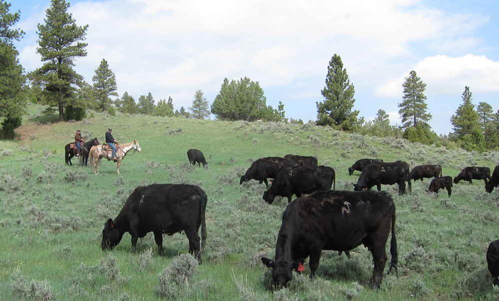 Nachdem wir die Kuehe mit den gerade geborenen Kaelbern aussortiert hatten, trieben wir die Herde auf eine neue Weide, wo wir sie jeden Tag checken, denn noch immer werden neue Kaelber geboren.